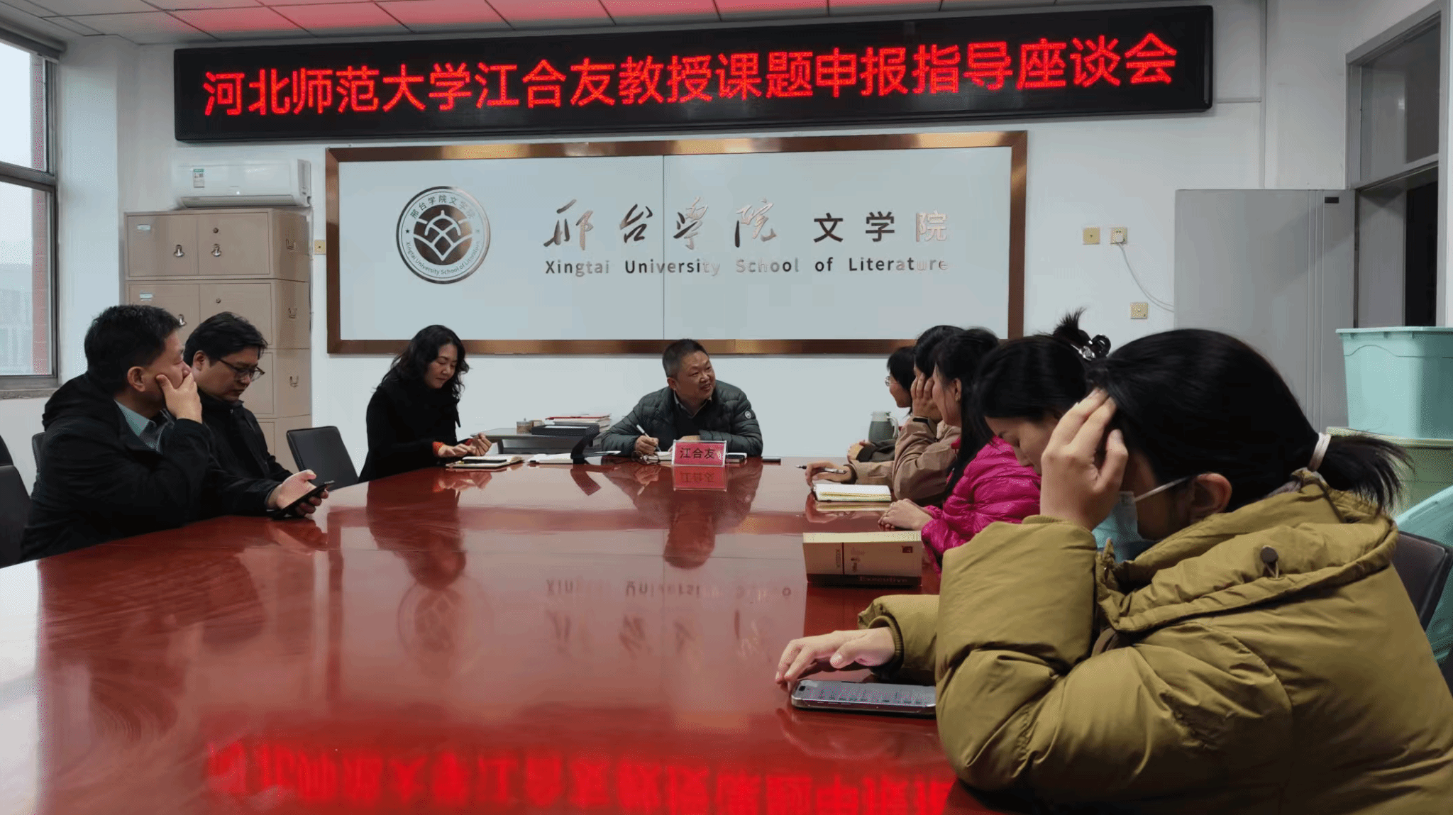 讲座结束后,江教授来到文学院会议室与青年教师座谈,指导青年教师课题申报工作。江教授详细了解青年教师关于科研方面的困境,并一一进行解惑。