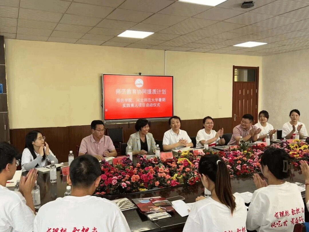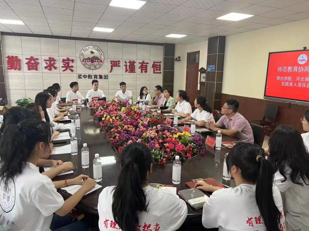 为深入贯彻落实邢台学院师范教育协同提质工作,邢台学院文学院协同河北师范大学教师教育学院联合举办“师范教育协同提质计划”暑期实践育人项目,7月9日,走进浆水中学开展为期5天的系列活动。当天下午,启动仪式在浆水中学会议室举行,由邢台学院文学院党委副书记李伟主持,浆水中学校长王文华、副校长武修彬、总务主任赵立成,河北师范大学教师教育学院党委副书记、副院长胡海霞、团委书记郑思佳,邢台学院文学院社会实践指导老师王亚茹出席,河北师范大学教师教育学院以及邢台学院文学院暑期社会实践队员三十余人参加。
