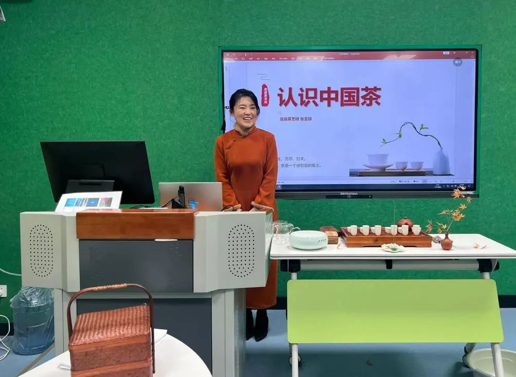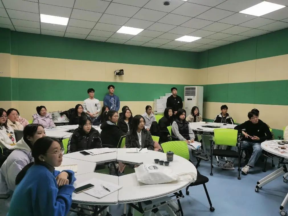 讲座伊始,张老师与同学们探讨了对茶的理解和认识,同学们积极发言,各抒己见,现场氛围轻松活跃。随后,老师分别从茶的起源、茶的分类、名茶品鉴、课堂实践四个方面进行了详细的讲解和演示。通过学习,同学们记住了“六大茶类”,认识了“茶中三宝”,体悟到了茶叶“和、静、怡、真”的内核特点,极大地丰富了自己的课外知识,在座师生兴致盎然,积极互动。