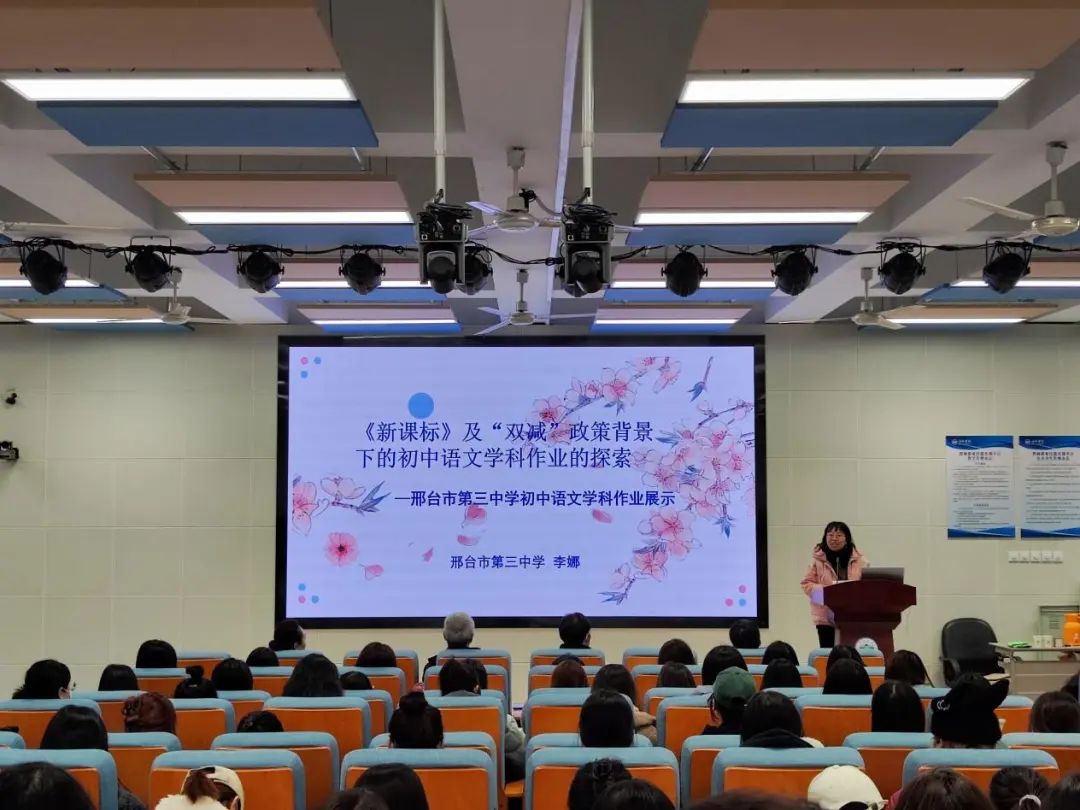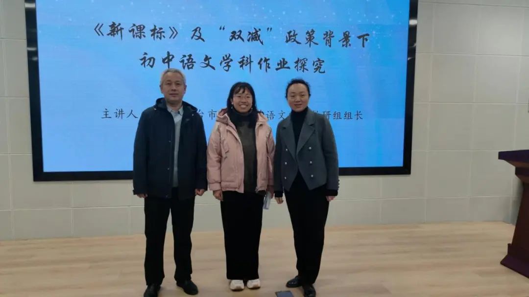 李娜老师向同学们介绍“新课标”“双减”两个背景下的语文教学以及中学生作业堪忧的现状,提出初中语文教师应优化语文作业设计,为学生减负增效,把广大学生“头疼”的作业变得生动有趣。