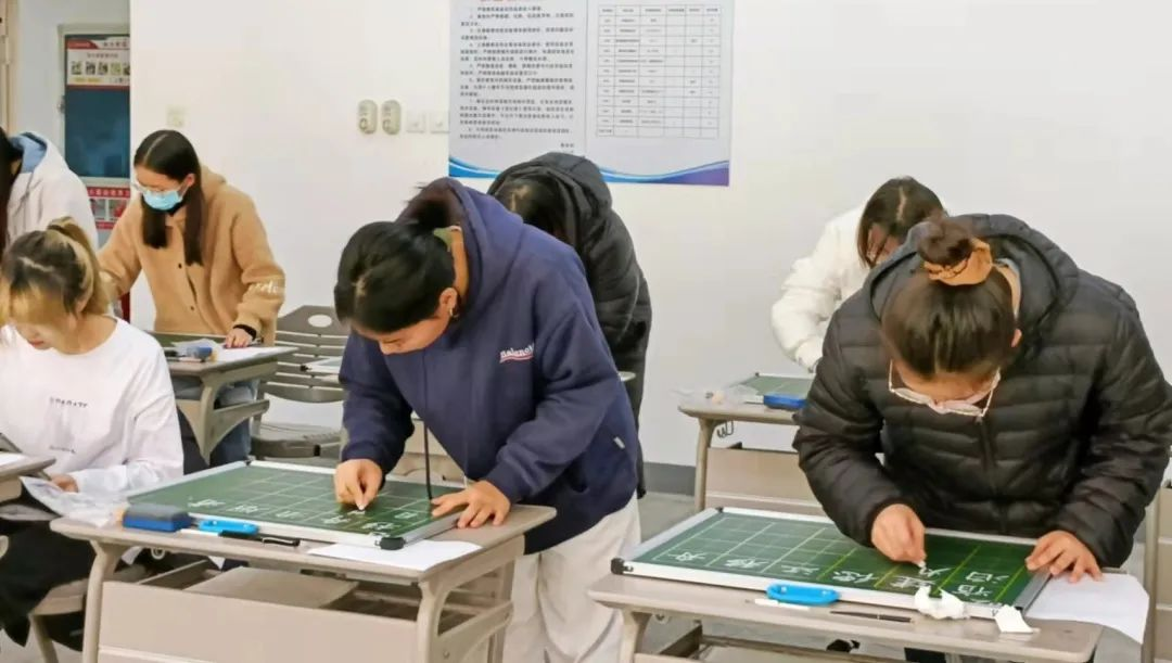 参赛选手需要在规定时间内分别书写钢笔字和粉笔字。他们个个胸有成竹,握笔如有神,字迹或苍劲有力,或隽永飘逸,或清秀雅致,这些字迹充分彰显了选手们精湛的书法技艺。