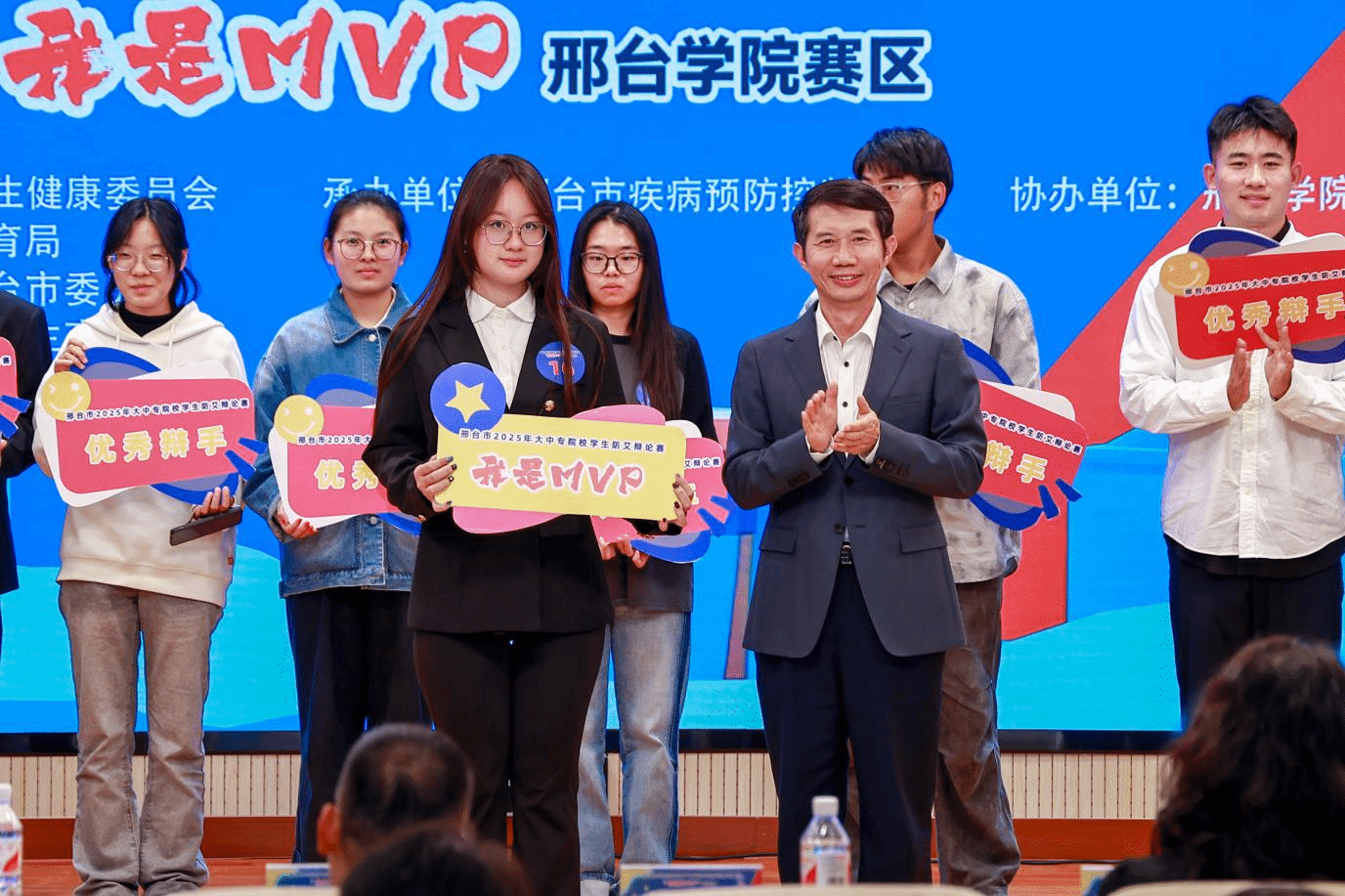 10月15日晚7点,邢台市2025年大中专院校学生艾滋病防治知识宣传辩论赛之“我是MVP”选拔赛在图书馆报告厅正式拉开帷幕。本次大赛由邢台市卫生健康委员会、邢台市教育局、共青团邢台市委员会、邢台市计划生育协会联合主办,邢台市疾病预防控制中心承办,邢台学院校医院、文学院协办。我校党委常委、副校长刘永利,文学院院长范爱菊、党委副书记司岩峰,校医院院长胡丽娟出席活动。邢台广播电视台城市频道总监星光、邢台新闻传媒中心资深记者习晶、青年画家健身达人知名博主师清铎、邢台疾控中心性病防治科科长刘宏升担任评委。