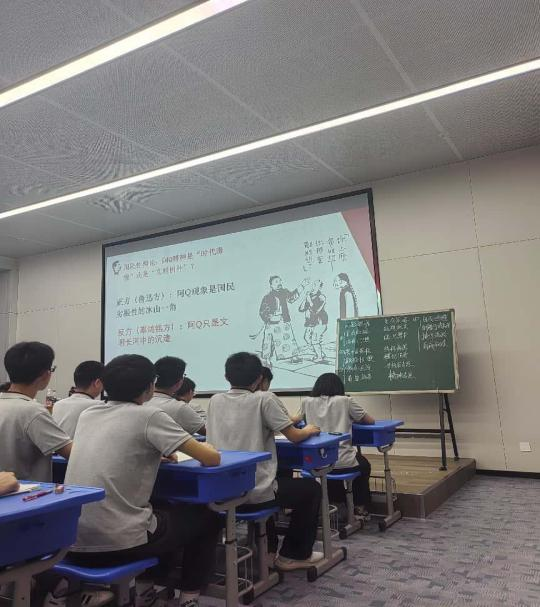 范爱菊院长组织团队重点观摩多节AI赋能语文示范课。南京市励志中学初中部吴雪老师借助AI动画,让学生与刘禹锡 “跨时空对话”,生动讲解《陋室铭》;南京市第五初级中学薛城老师通过对比AI生成的紫藤萝图像,引导学生剖析《紫藤萝瀑布》的意象情感;南京师范大学附属中学张志强老师运用 AI 辅助思辨性写作教学,强调“人”的核心创作价值。杨级老师的《阿Q正传》的课堂上有为阿Q写的歌,有激烈的辩论,有课堂随笔,师生机互动堪称完美。课后,范院长等人与授课教师深入交流,收集丰富教学案例,为学院课程改革储备珍贵素材。