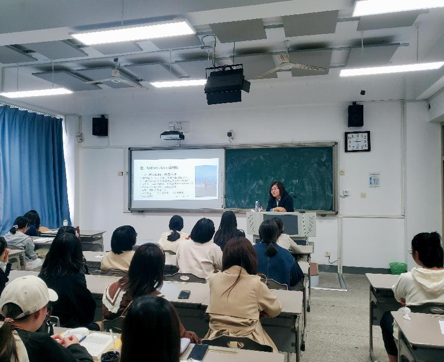 赵建荣老师曾受学校委派赴国外从事汉语教学工作,具有丰富的汉语国际教育和教学经验。她首先分享了自己在国外工作生活的经历和见闻,引发同学们的浓厚兴趣。再结合海外汉语教学的亲身经历,从“思想信念”、“综合技能”、“职业规划”等方面为同学们介绍了作为一名合格的国际中文教师所应具备的专业素养。她认为,作为新时代的汉语国际教育专业人才,同学们首先要树立坚定的爱国信念和家国情怀,培养深厚的文化素养,立志弘扬中华优秀文化。更要结合自身专业特点,以“知其然知其所以然”的态度夯实专业基础知识,培养跨文化交流、中华才艺、外语等多项技能,拓展国际化视野,提高国际交流能力,修炼强大的自我,成为能“讲好中国故事,传播好中国声音”的复合型人才。最后,赵老师介绍了汉语国际教育专业的就业前景和职业优势,为同学们未来的职业发展指明了方向。