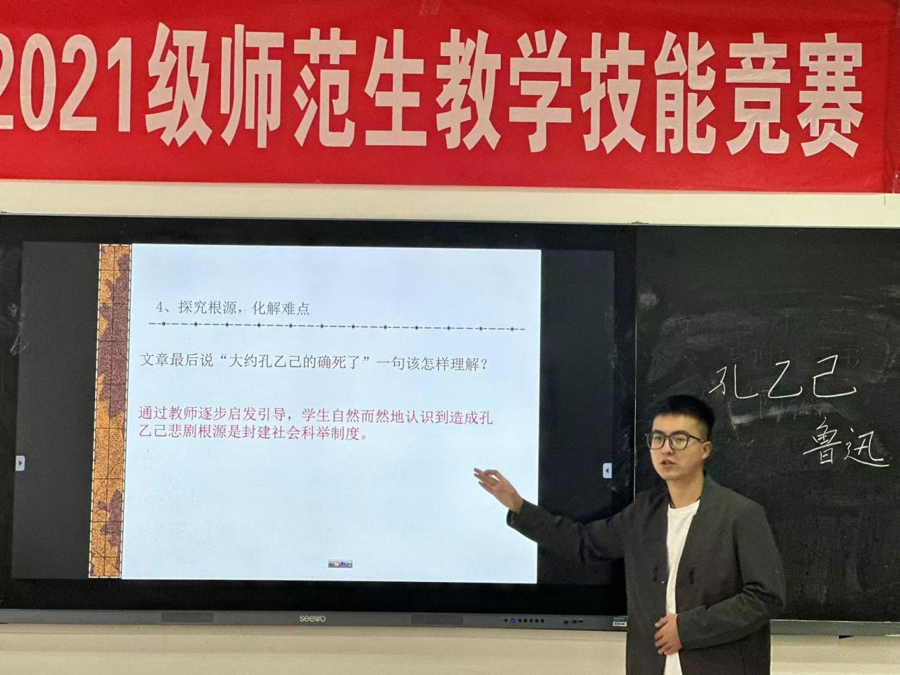 为强化汉语言文学专业师范生的教学技能,提升师范生的专业素养和核心竞争力,展现未来中学语文教师的风采,文学院于11月22日至12月7日,开展了为期半月的师范生教学技能大赛。大赛分为初赛和决赛两个阶段,2021级师范生全部参加了此次比赛。