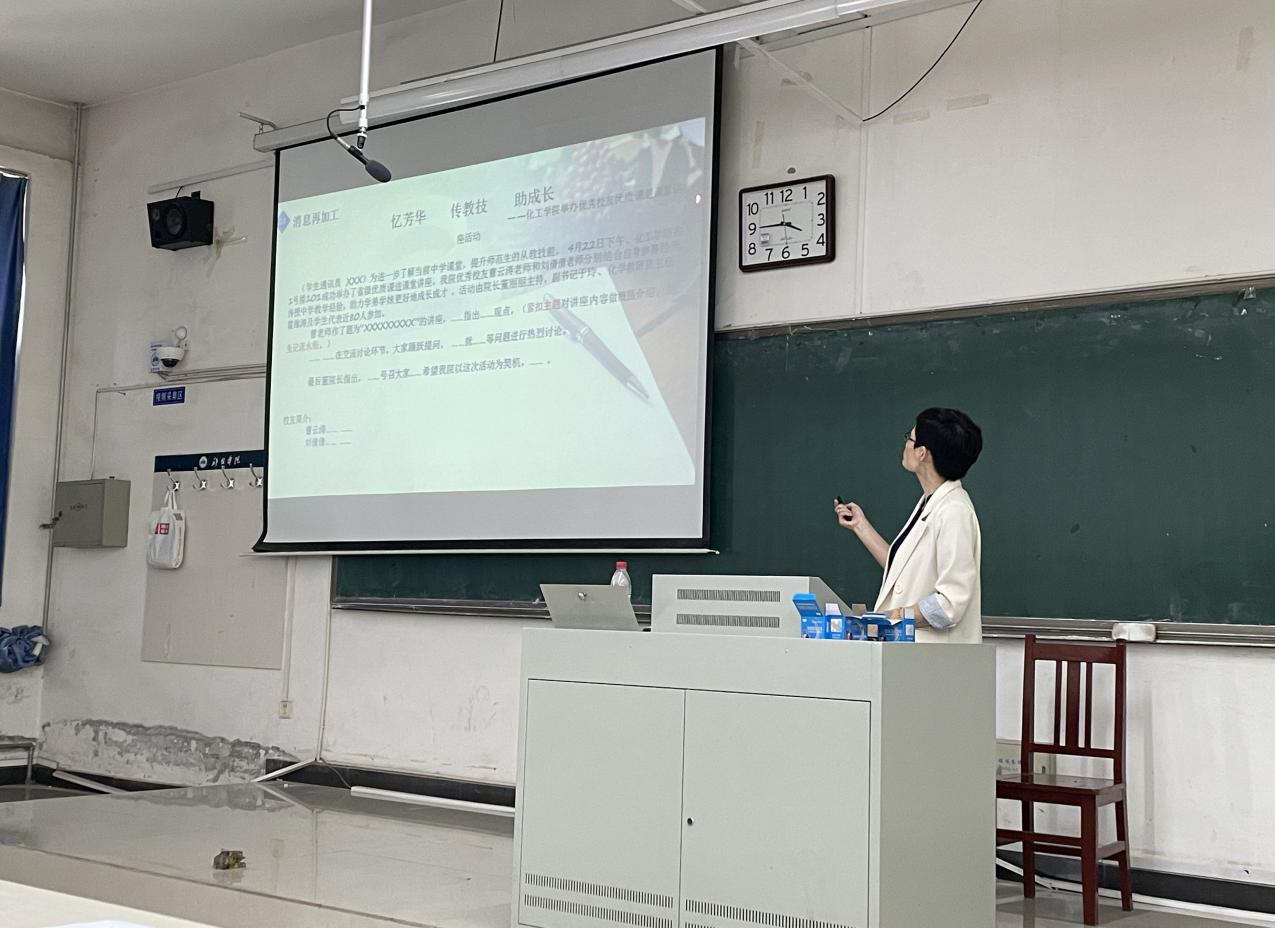 乔老师的《应用文写作》讲座从《葬花吟》和中央新闻两个视频片段导入,先让大家对文学作品和应用文有一个强烈直观感受,再在了解应用文基本知识前提下,结合化学与化工学院所供新闻稿从格式和内容做具体分析,让同学们认识到文字材料上的不足,注重把握细节,规避不必要的错误,提高应用文写作的质量和效率。