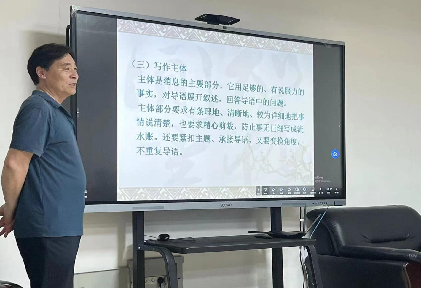 杨老师开先场做主题为《优秀班主任成长班公文写作》的讲座。从行文目的、行文方向和行文关系入手,简要介绍公文概念、种类和写作基本原则,并结合实例着重讲解通知、请示和报告的写作格式、内容和规范要求,强调一定要把握实事求是和准确性两大原则,多积累、多推敲,在工作实践中勤学勤练,勇于创新,努力掌握写作要领,提高写作水平。