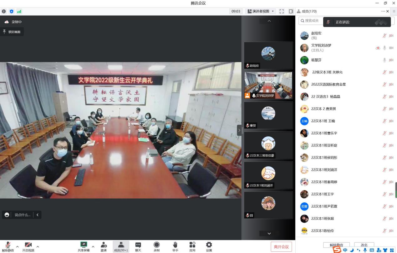 白露时节、邢襄九月、天高云淡、秋意盎然。9月13日上午,文学院通过视频方式,隆重举行“文学院2022级新生云开学典礼”。文学院党委书记施江斌主持。文学院党委副书记李伟、文学院副院长范爱菊、党政综合办公室卫三强、教学科研办公室刘诗梦、文学教研室主任高邢生、教师代表任慧群、海外高层次人才越南籍教师范氏清华、优秀校友代表董贺、高年级学生代表沈乾雨和2022级全体同学参加了典礼活动。