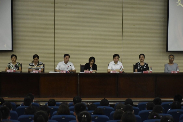 会议在雄壮的国歌声中拉开帷幕,党委书记施江斌首先代表文学院全体师生向新同学的到来表示最热烈的欢迎和最美好的祝愿。接着院长王玉华致辞,勉励新同学珍惜大学时光,不负青春韶华,不忘初心,奋力前行。教师代表范爱菊在发言时用诙谐的话语告诉新同学在丰收的季节遇见、在百年历史的邢台学院遇见、在极具文化底蕴的文学院遇见是一件很美好的事。老生代表张坤、新生代表韩锡慧在发言时分别表达了各自的心声与期待。于宏源、孟宪华、任慧群三位教研室主任分别从本专业人才培养目标、课程模块设置、就业取向等方面阐释了各自专业的特点和规律。