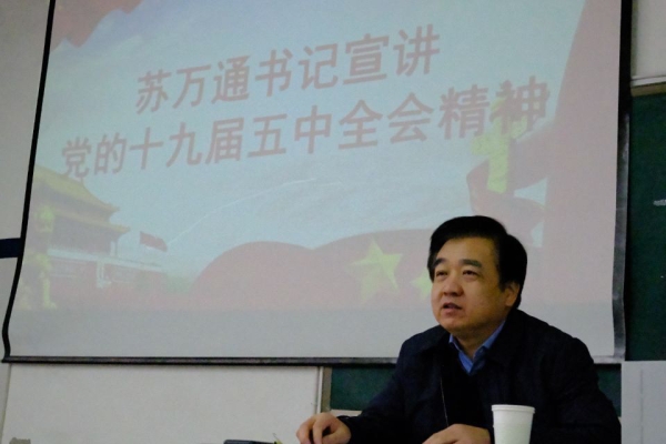 2020年10月26-29日,党的十九届五中全会在北京召开,会议审议通过《中共中央关于制定国民经济和社会发展第十四个五年规划和二〇三五年远景目标的建议》,为未来五年乃至十五年中国发展擘画蓝图。为深入学习贯彻党的十九届五中全会精神,11月25日文学院邀请学校纪委书记苏万通,在公教楼403室举办党的十九届五中全会精神宣讲会。文学院党委书记施江斌主持,文学院近200名师生参加了宣讲会。
