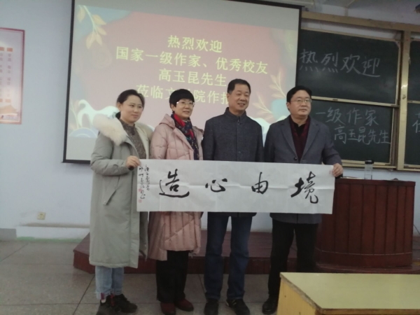 报告会上,高玉昆先生结合自己的人生经历,讲述了他从事文学创作不平凡的历程。他自幼受家学滋养,酷爱文学、书法、绘画等艺术。上小学时每次作文都受到语文老师的表扬,并作为范文在全班宣读。上大学期间就开始在《辽宁文学》、《小小说选刊》等文学期刊上发表作品。从六年企业工作经历,到以第一名成绩考入邢台市文联事业编,几十年如一日,他对文学的痴迷以及创作从未停歇。当太行赤子、河北农大教授李保国教授扶贫事迹见诸报端后,他被李保国教授的先进事迹深深打动,经过深度采访、搜集素材,饱含热泪创作出长篇报告文学《幸福播撒太行山——李保国在太行山区扶贫纪实》。当谈到创作体会时,他说:“搞文学创作是辛苦的,也是幸福的、快乐的”,“创作者要走正道、走大道”,“创作者要树立正确的三观”。