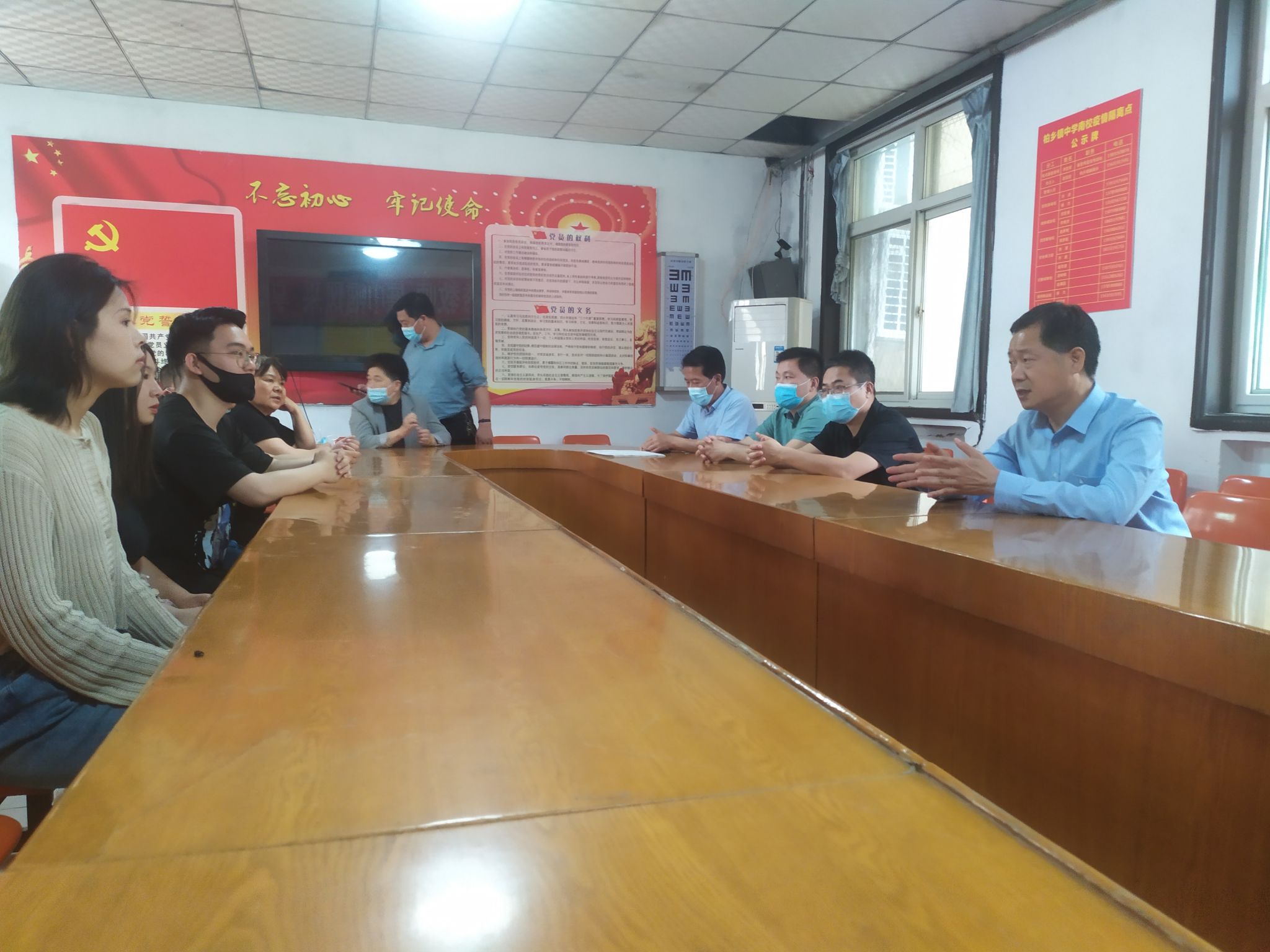 施书记每到一处都要嘱咐同学们:一要倍加珍惜这次难得的顶岗实习机会,多向实习学校优秀教师学习,在课堂教学、教学改革、班级管理、课外活动等多方面锻炼自己。二要服从实习学校和母校双重管理,模范遵守校规校纪,扮演好教师和学生双重角色。三要注意人身和财产安全,做好常态化疫情防控工作。在座谈中,学业指导教师卫三强对实习学生进行了专业方面的指导。
