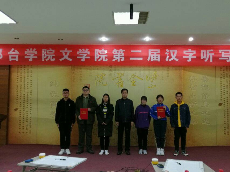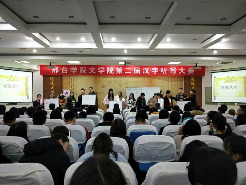 在网络文化流行的当下,数千年发展积淀的汉字书写和传承正面临着巨大挑战,键盘输入习惯使越来越多人提笔忘字。为进一步加强学生对汉字书写的重视和书写能力的提升,文学院于11月12日下午在图书馆楼报告厅举办了第二届汉字听写大赛。本次比赛邀请了文学院教师于宏源、张玉棉、孙秋海、王荣兴、高邢生等担任评委,16文秘专1班学生刘文寒担任主持人。文学院党委书记施江斌及文学院师生代表共计200余人观看了比赛。