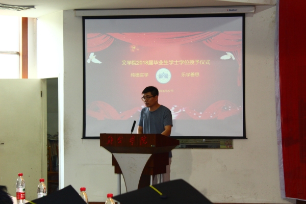 文学院分学位委员会主席王玉华宣读《邢台学院文学院关于授予2018届毕业生学士学位的决定》。