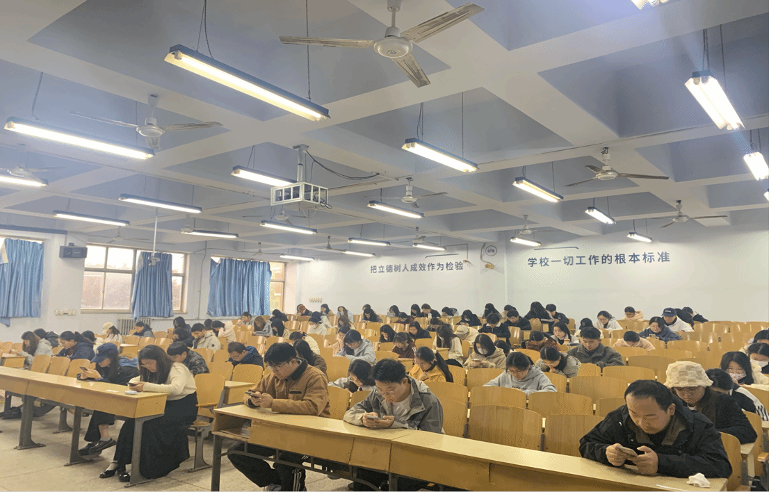 此次选拔赛以“弘扬人文精神,传承中华优秀传统文化”为主题,采取线下集中、线上答题的形式进行,共有193名选手通过自愿报名和院系推荐方式进入校级选拔赛。比赛内容涵盖文学、历史、哲学、艺术等多个领域,通过人文知识基础选择题和古诗词创作题两大部分,全面考查参赛选手的人文知识储备、思辨能力与表达水平。比赛中,选手们沉着应答,展现出扎实的知识储备、缜密的逻辑思维和深厚的人文素养。本次比赛结束后,按照成绩排名将选拔5-10名同学参加后期培训,并代表学校出征河北省决赛。