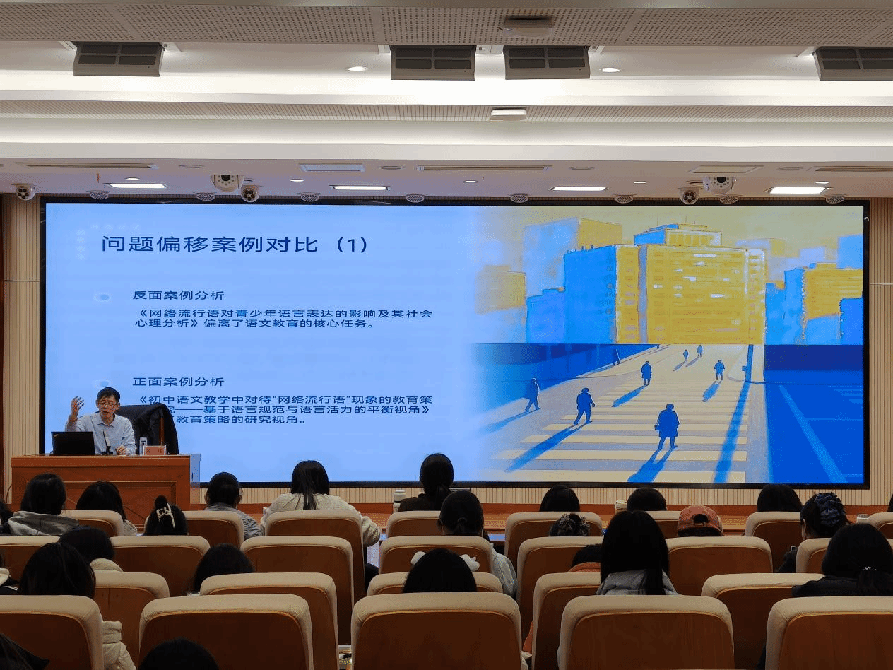 黄教授表示本科毕业论文是对四年学习成果的最高检验,也是对学生学术规范、研究方法和思维逻辑的强化训练。在论文选题方面,黄教授提出专业性、问题性、可行性和价值性四个核心原则,强调选题要紧密围绕专业方向,既要聚焦具体问题,也要符合自身的研究能力与资源条件。为了让师生更加直观地理解选题中要素的重要性,他列举了大量的正反案例来剖析论文撰写中的常见问题。此外,黄教授还针对论文结构给出了建议,指出本科毕业论文应包含选题缘由、文献综述、研究方法、问题分析、解决方案等核心部分,教育方向的论文可以结合教学设计、效果评估等方面进行拓展。讲座最后,黄教授解读了论文撰写的标题和引用规范,鼓励学生要主动和导师沟通,在反复打磨中提升毕业论文的质量。